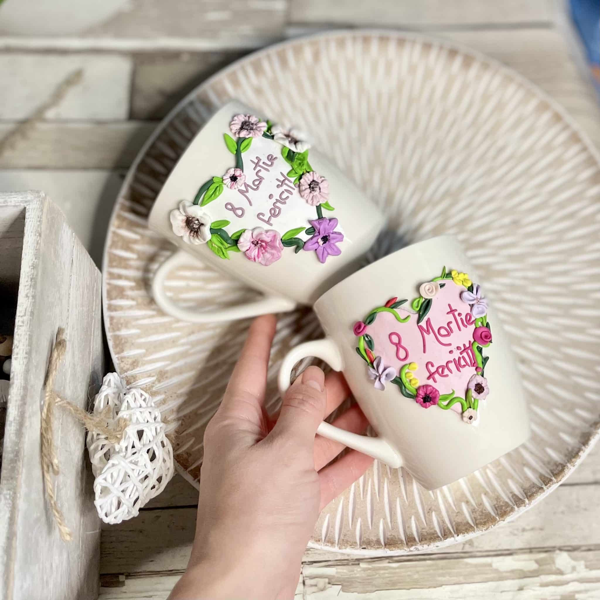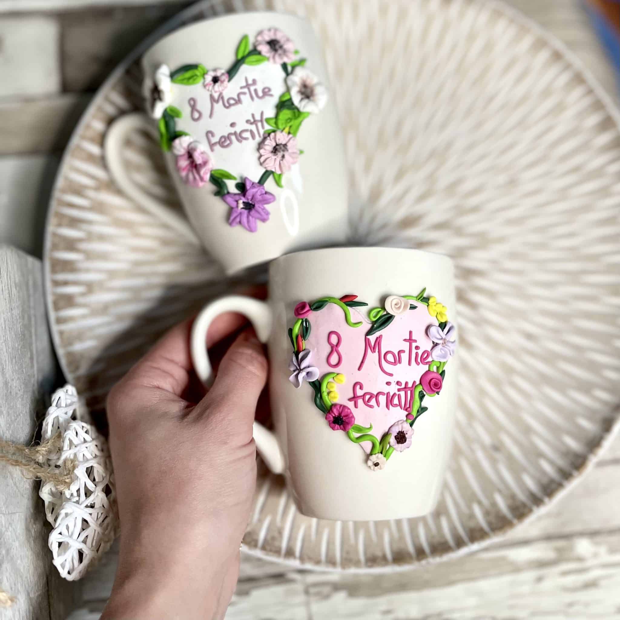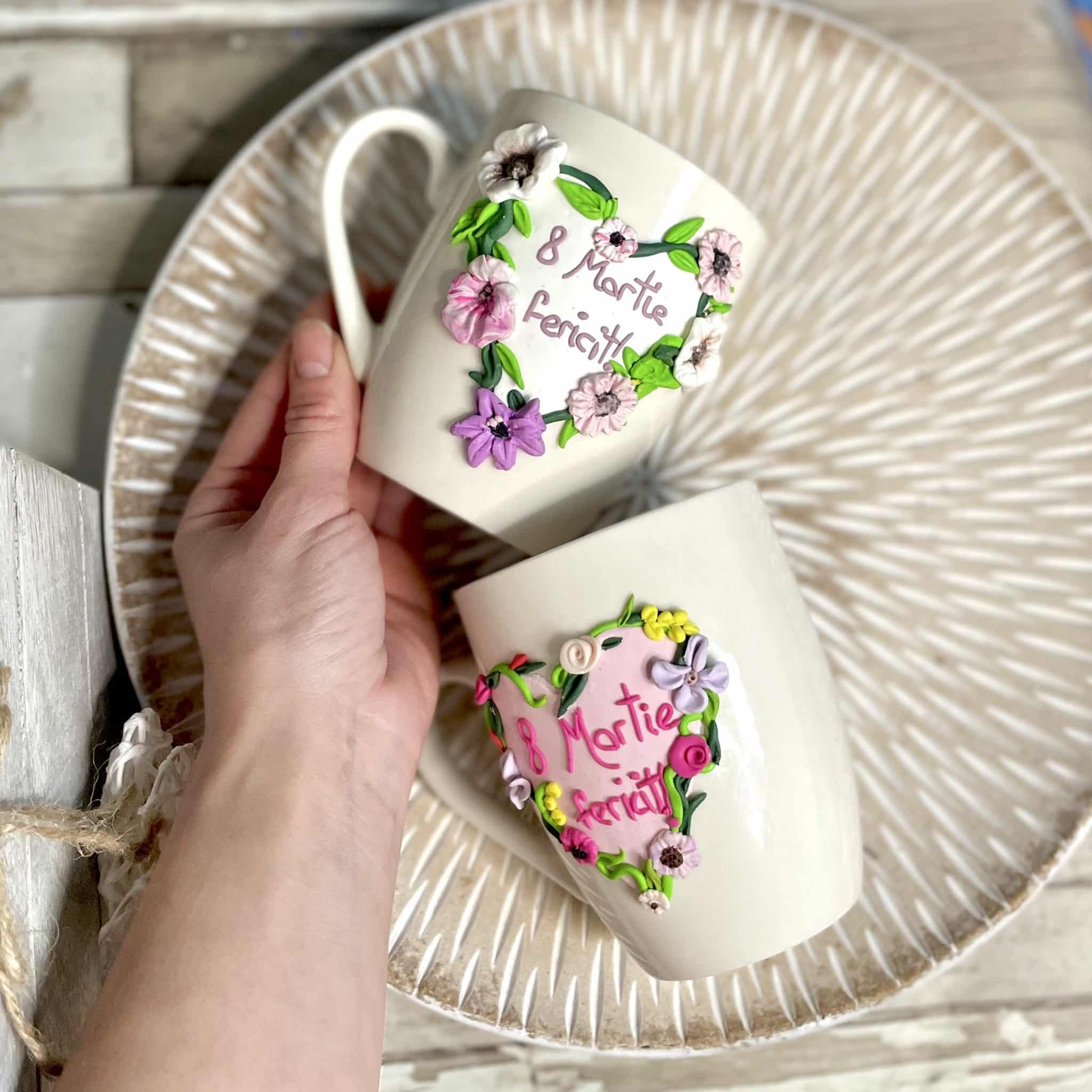 Cana decorata manual din pasta polimerica fimo. Pretul afisat este pentru o cana.