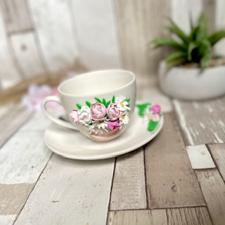 Set ceasca+farfurie fimo “Bujor”