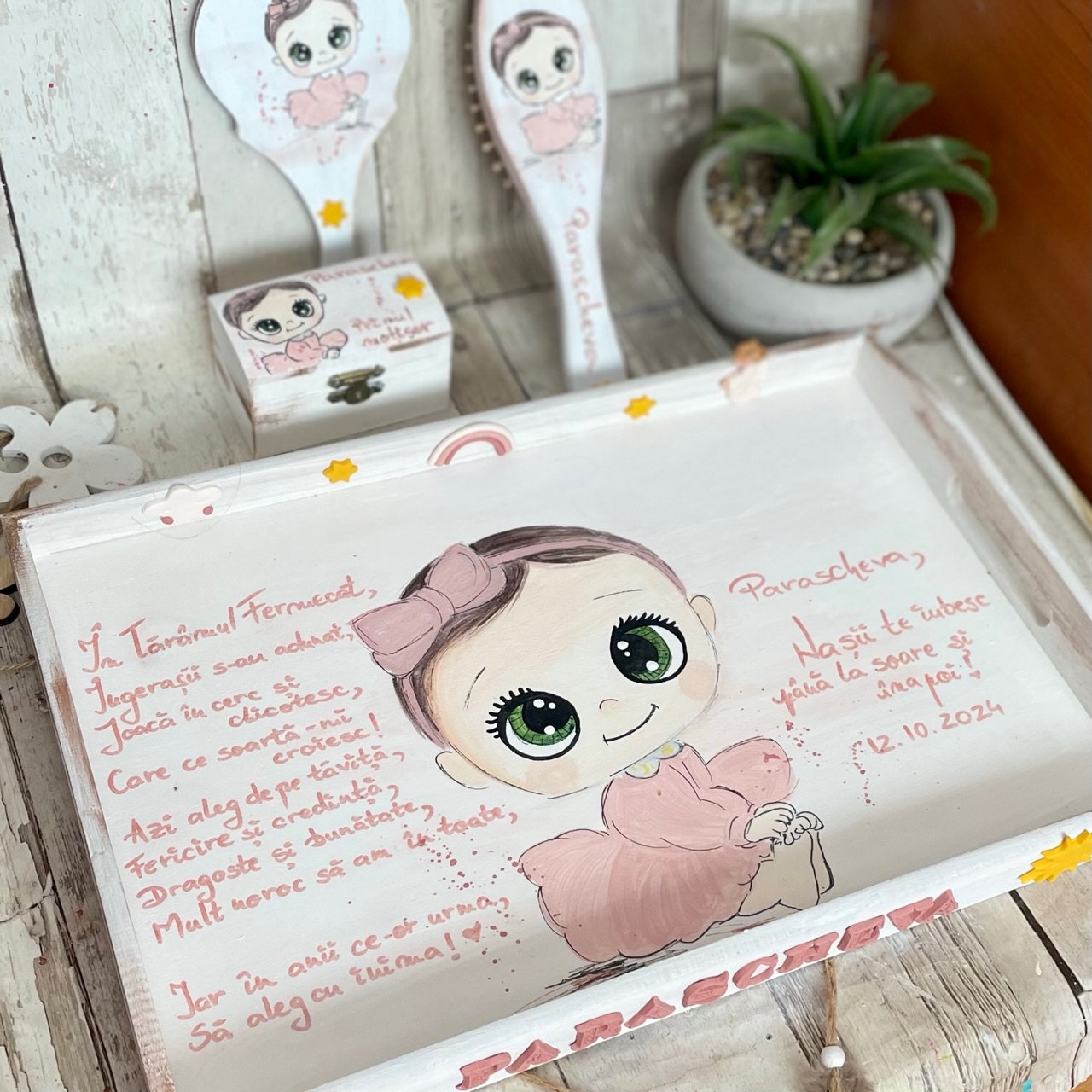 Setul se realizeaza pe comanda. Modelul desenat il alegem impreuna, in functie de tematica dorita.